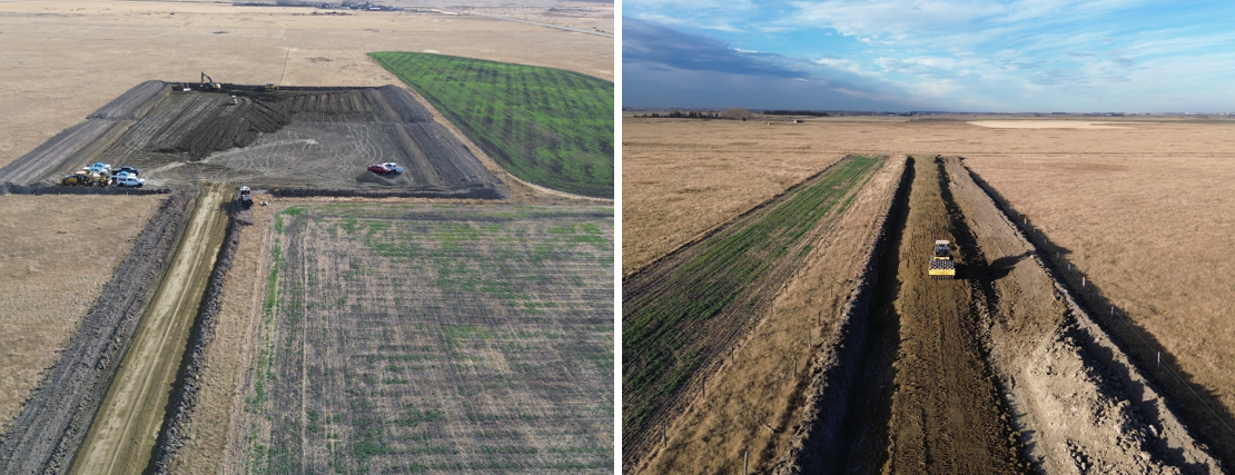Pad construction work will include road access improvements, pad construction, and environmental and safety preparations in advance of mobilizing the drilling rig to site. As is standard for drilling and operations activities in Alberta, and as part of E3’s commitment to environmental best practices, the topsoil and sub soil are stripped from the site and stored on either side (see photos below). Once the planned operations on this site are complete, the site will be reclaimed. Disturbed soil will be put back into place and the land returned to its original use.